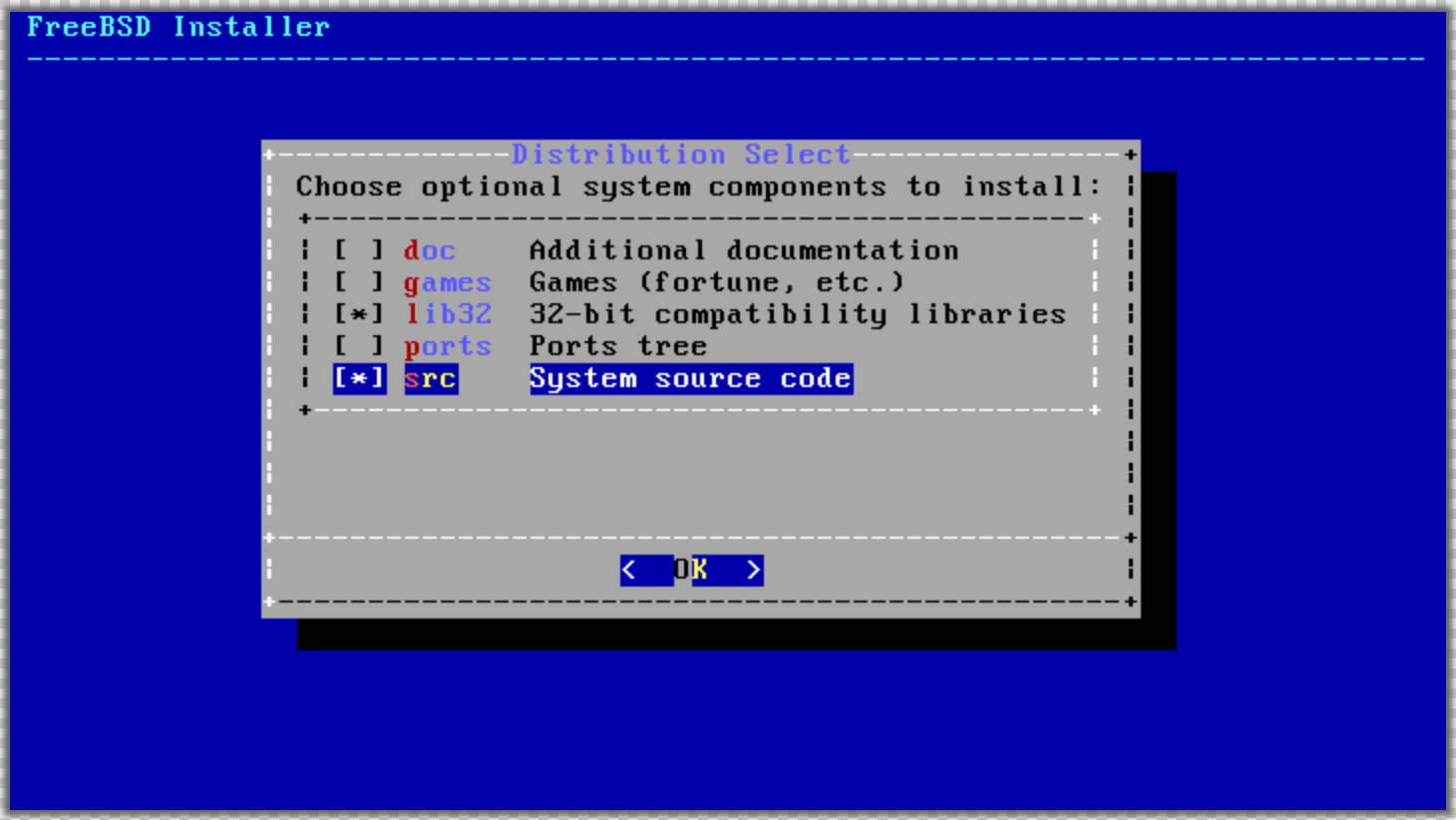 3. For beginners, we suggest selecting to install 32-bit libraries (lib32) and source code (src). Deselect games if you have no use for them.